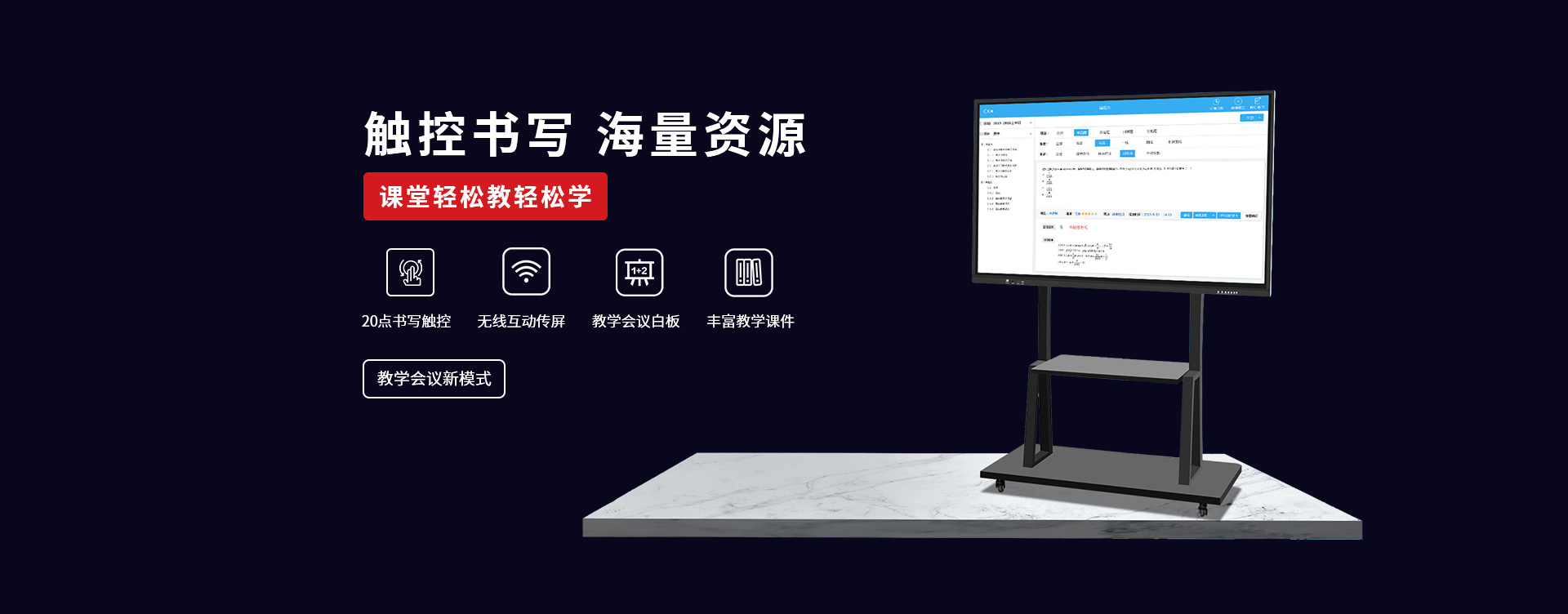 〔教育智慧黑板〕 是新一代教學顯示設備,具有高清顯示、高精度觸摸操作應用,黑板書寫教學功能與一身;內(nèi)置安卓、windows系統(tǒng),可滿足教學不同的應用軟件使用;純平面書寫黑板,適應粉筆,無塵粉筆、水性粉筆書寫,適合不同環(huán)境應用;觸摸切換書寫黑板與屏幕顯示,可讓老師快速進行教學應用切換;純平面外觀,解決傳統(tǒng)推拉黑板的笨重,復雜的結構特點,大大提升了教師授課的體驗感和演示效果。